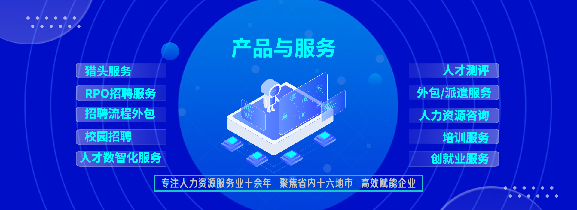 一站式服務,降低企業(yè)管理成本 事務外包:人事事務外包,實習生招聘與管理外包 崗位外包:IT技術(shù)、財務/會計、行政文秘類和市場類崗位 項目外包:校園招聘外包、招聘流程外包、社交媒體運維外包、設計創(chuàng)意外包 業(yè)務流程外包:物業(yè)管理項目外包、零售快消行業(yè)的營銷服 務外包、倉儲物流業(yè)的倉儲與配送外包、O2O地推營銷外包、 呼叫中心外包等